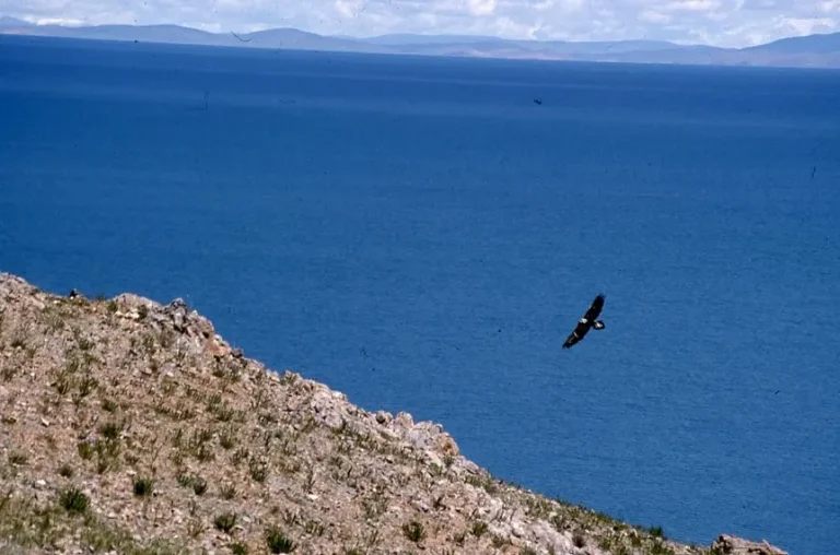 On the same trip I sat on a rocky outcrop, overlooking Namso la (heavenly lake), a vast expanse of clear blue water at 15,000 feet in central Tibet. Completely alone, I watched an eagle soar over me and felt totally at peace. A verse of a poem by the 7th Dalai Lama came to mind: